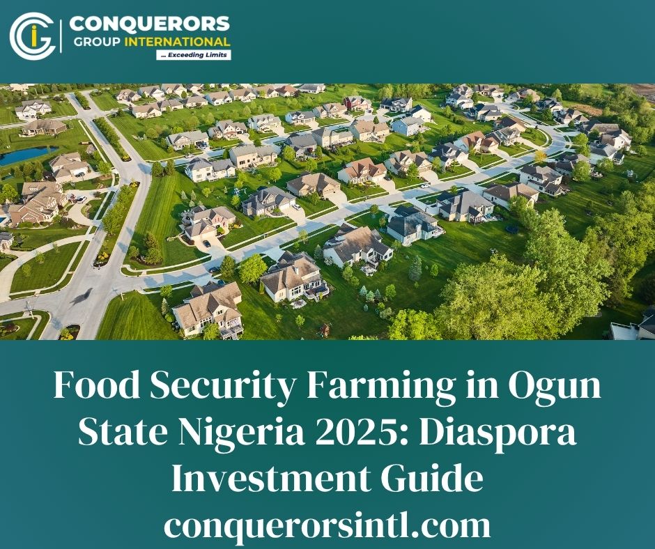 As a property investor and entrepreneur who’s tapped into Nigeria’s $70 billion agricultural sector, I’ve seen how food security farming in Ogun State Nigeria 2025 offers diaspora entrepreneurs a chance to make an impact while earning 15-20% ROI. With $25 billion in remittances fueling demand, Ogun’s fertile plots—like Agro at ₦500k in Itori, Owode—are ideal for sustainable farming to support Nigeria’s food needs. Unlike generic agribusiness platforms, Conquerors International offers affordable land tailored for expat farmers. My own Itori farm, started on a ₦500k plot, now supplies local markets with cassava and yields steady profits. Here’s your guide to investing in Ogun’s food security.
