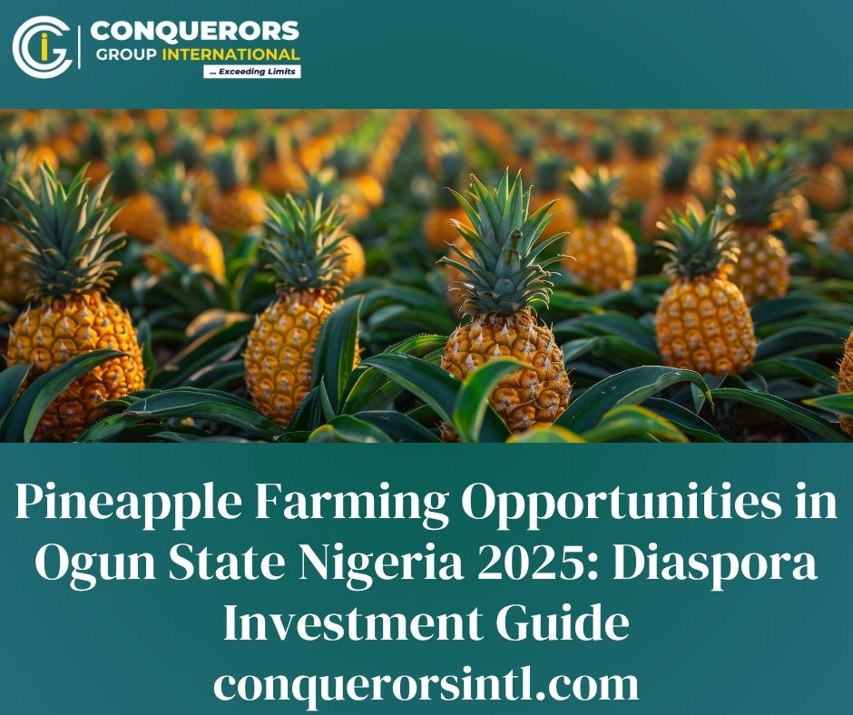 As a property investor and entrepreneur who’s tapped into Nigeria’s $70 billion agricultural sector, I’ve seen how pineapple farming opportunities in Ogun State Nigeria 2025 are a sweet deal for diaspora entrepreneurs. With $25 billion in remittances fueling investments and Nigeria exporting 50,000 metric tons of pineapples annually, Ogun’s well-drained, tropical plots—like Agro at ₦500k in Itori, Owode—are ideal for high-yield pineapple orchards. Unlike generic platforms, Conquerors International offers affordable land tailored for expat farmers. My own Itori pineapple farm, started on a ₦500k plot with Smooth Cayenne varieties, now supplies juice factories and yields 17% ROI. Here’s your guide to launching a pineapple farm in Ogun.
