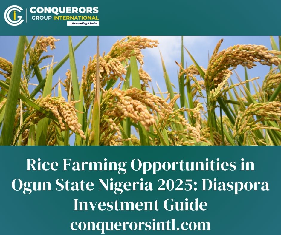 Launch your rice farm with Conquerors International, or get free consulting to grow your agribusiness. DM “Ogun Invest” for a tailored diaspora plan with rice farming strategies.